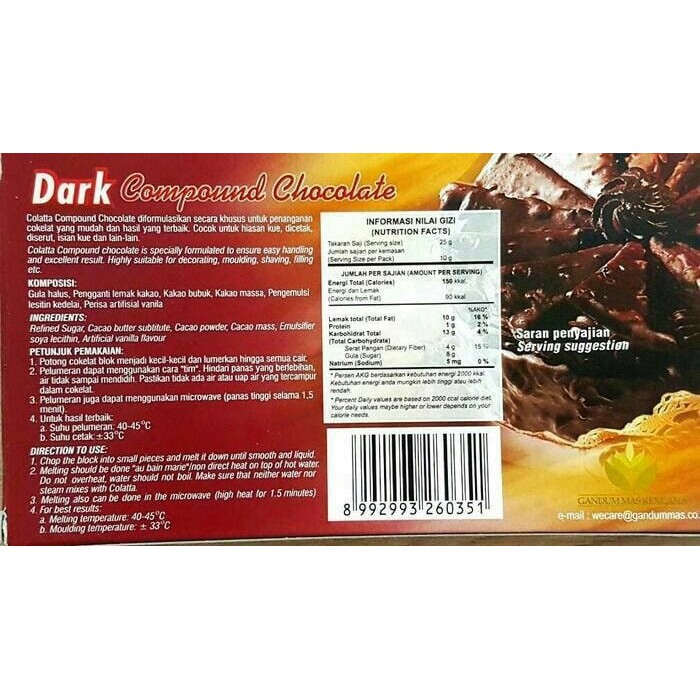 And also we have other big range of chocolate or chocolate related products for baking and. Colatta dark compound kemasan kotak isi 250gr dapat digunakan sebagai topping, coklat karakter, praline, campuran adonan cake, dll halal mui colatta compound chocolate adalah. Premium milk chocolate compound with the famous signature characteristic of colatta compound series: Colatta compound chocolate is specially formulated to ensure easy handling and excellent result. Database makanan dan penghitung kalori. Colatta dark compound 1 kg coklat hitam compound chocolate collata. Harga coklat compound lebih murah daripada coklat couverture. Beberapa variasi yang kami pergunakan sebagai filling Coklat compound tidak perlu melalui proses tempering, cukup dilelehkan dengan cara ditim sampai leleh dan siap untuk digunakan. Colatta dark compound chocolate 6. Selain merilis cokelat baru, colatta juga memberikan workshop cara membuat. Dua bahan tersebut yang menjadi pembeda antara cokelat compound dan resep cokelat bar ala silverqueen. Untuk produk colatta terpopuler, colatta chocolate compound dark, colatta chocolate compound white dan colatta chocolate compound adalah koleksi yang paling banyak diminati.